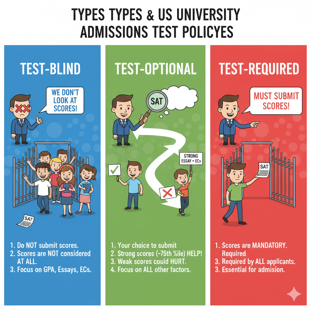 - 개념: 점수를 제출하더라도 입학 심사관은 절대로 볼 수 없습니다. 지원자의 점수는 심사에 반영되지 않습니다.