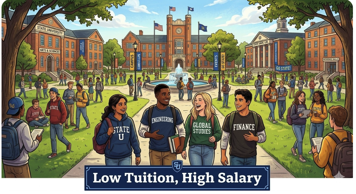 무조건 명문대만 고집하다가는 학자금 늪에 빠질 수 있습니다. 2026년 미국 취업 시장에서 검증된, 학비 대비 소득 상승률이 독보적인 가성비 대학들을 소개합니다. 전략적 대학 선택으로 성공적인 유학 투자를 시작하세요.