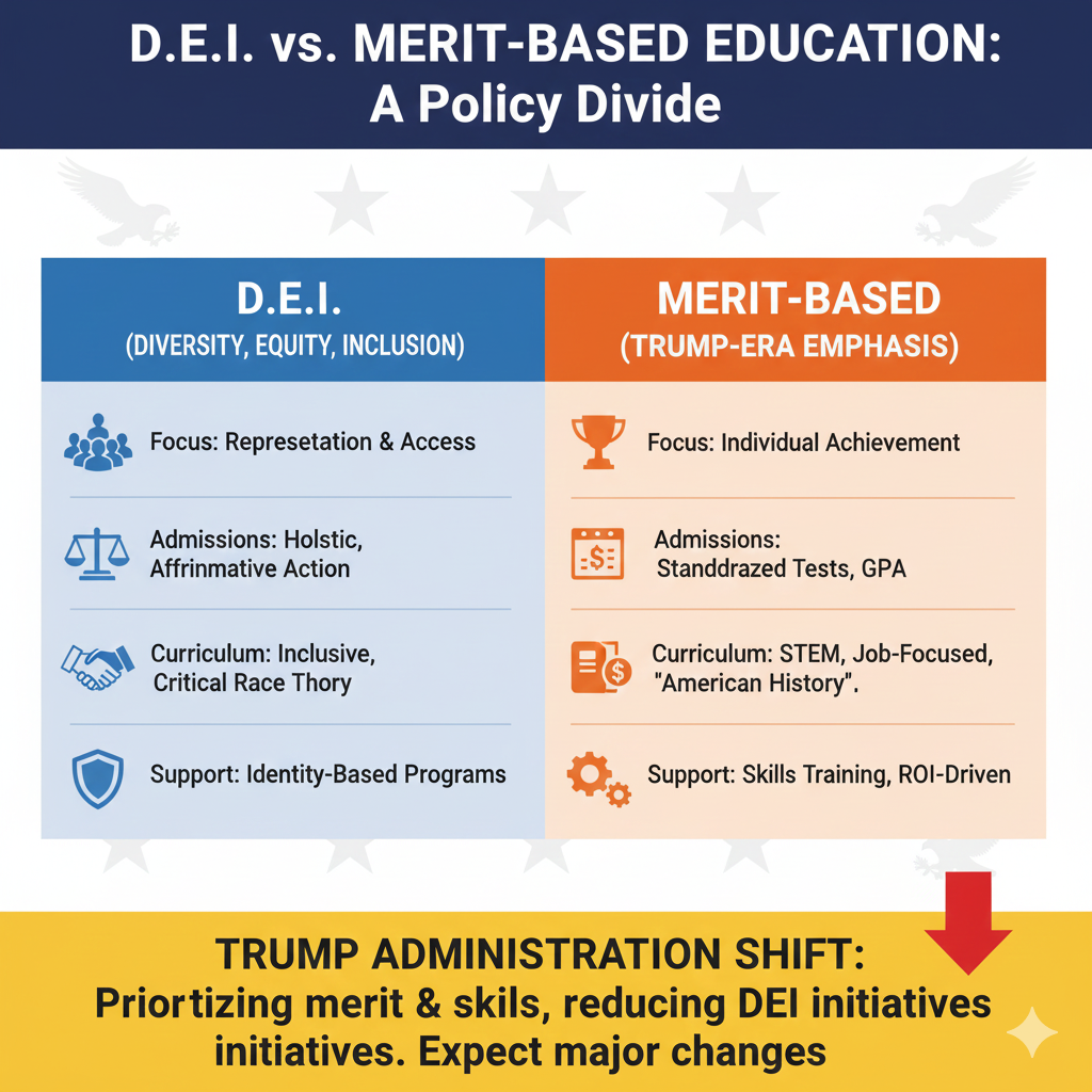 2.1 이념적 균형인가, 아니면 검열인가? 트럼프 행정부는 현재 미국 명문대들을 장악한 소위 '워크(Woke, 깨어있는)' 문화를 정면으로 겨냥합니다. 특히 다양성, 형평성, 포용성을 강조하는 DEI(Diversity, Equity, and Inclusion) 프로그램을 역차별의 근원으로 규정하고 이를 폐지하려 합니다.