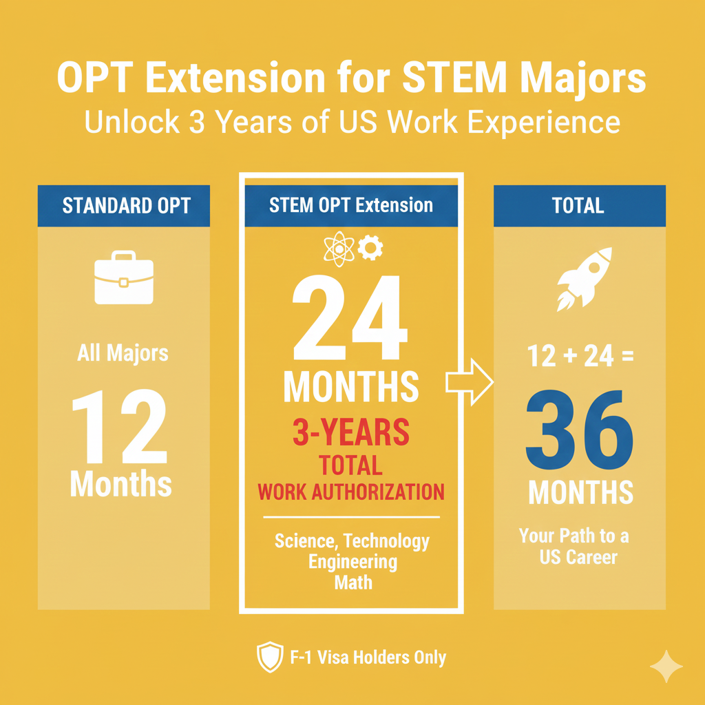 - STEM 전공의 파격 혜택: 과학, 기술, 공학, 수학 전공자는 최대 3년(36개월)까지 미국에 체류하며 일할 수 있습니다. 글로벌 기업(Google, Amazon 등)에서의 3년 경력은 한국 귀국 시에도, 미국 잔류 시에도 대체 불가능한 경쟁력이 됩니다.
