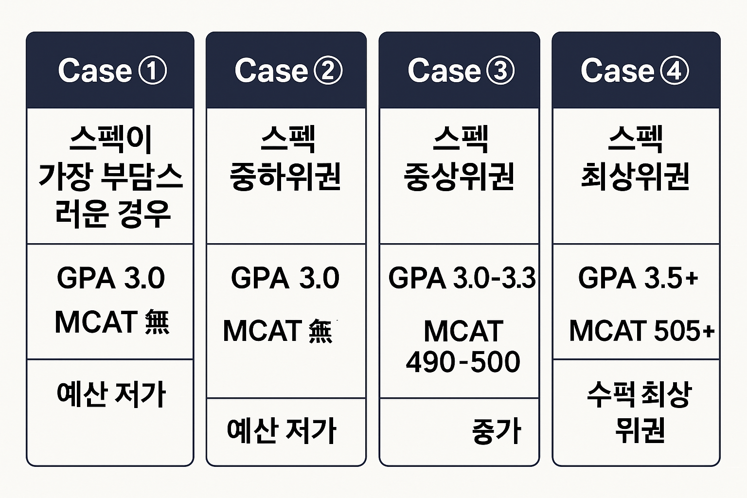 🎯 Case ② 스펙 중하위권 (GPA 3.0~3.3, MCAT 490~500)