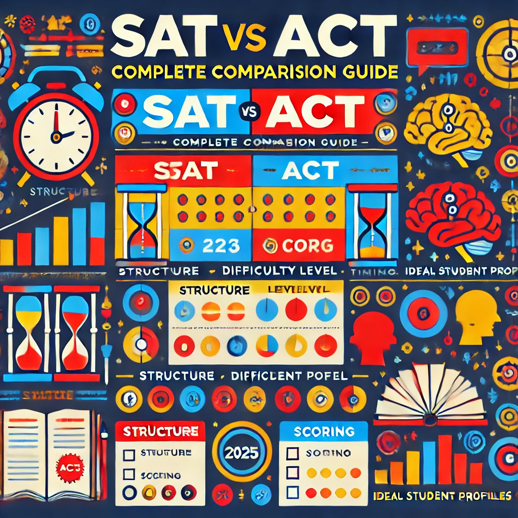 SAT vs ACT, 어떤 시험이 우리 아이에게 더 유리할까? 시험 구조, 난이도, 시간표, 점수 환산표, 추천 유형, 대학별 반영 여부까지 비교 분석한 2025 입시 전략 가이드!