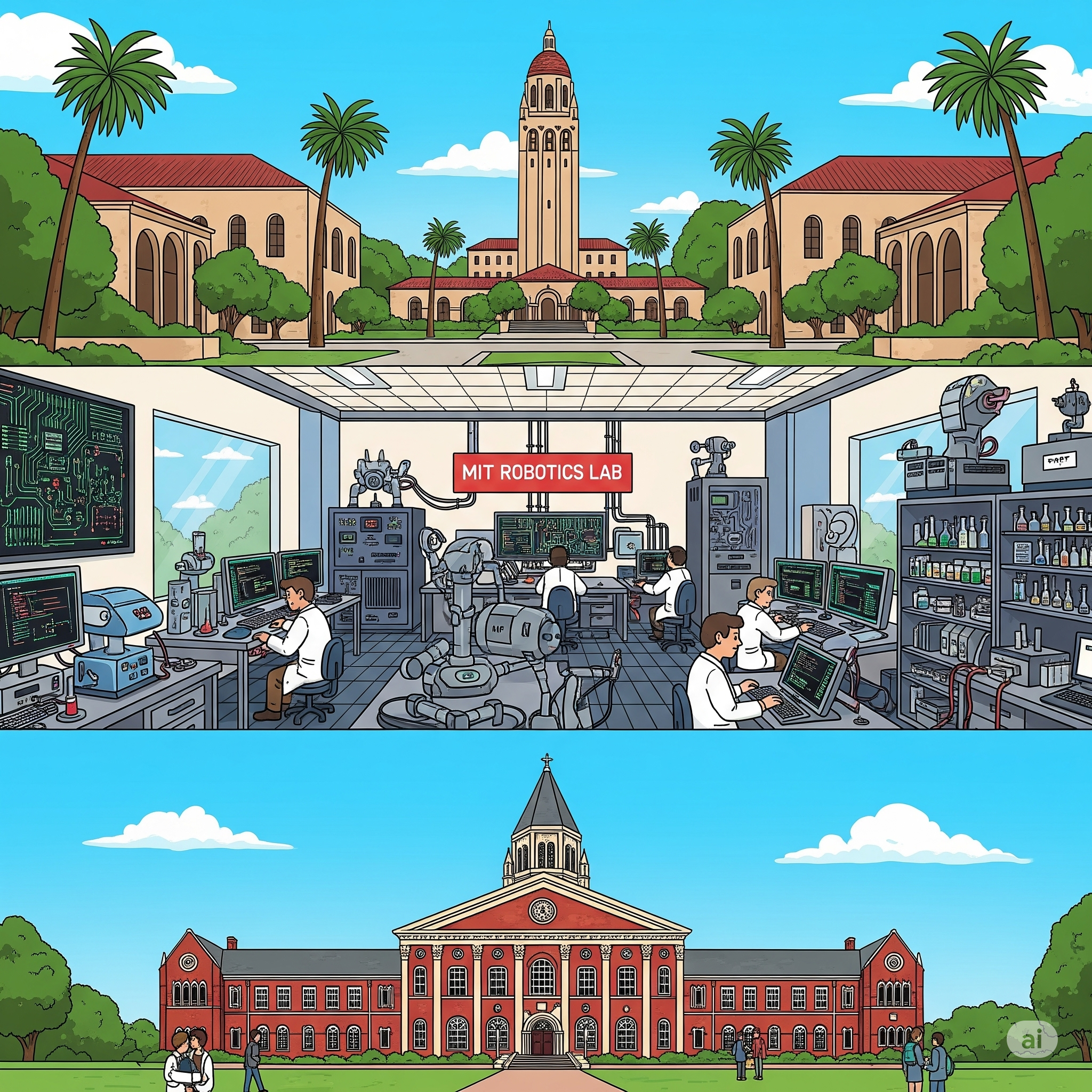 - MIT는 매사추세츠 주 케임브리지에 위치한 이공계 최고의 명문 대학입니다. 로봇공학, 인공지능, 항공우주공학, 재료과학 등 최첨단 분야에서 세계를 선도하며, 실험 중심의 교육과 산업계와의 밀접한 연계가 특징입니다. 세계 각국의 우수한 과학자와 공학자가 모여 활발한 공동 연구를 진행합니다.