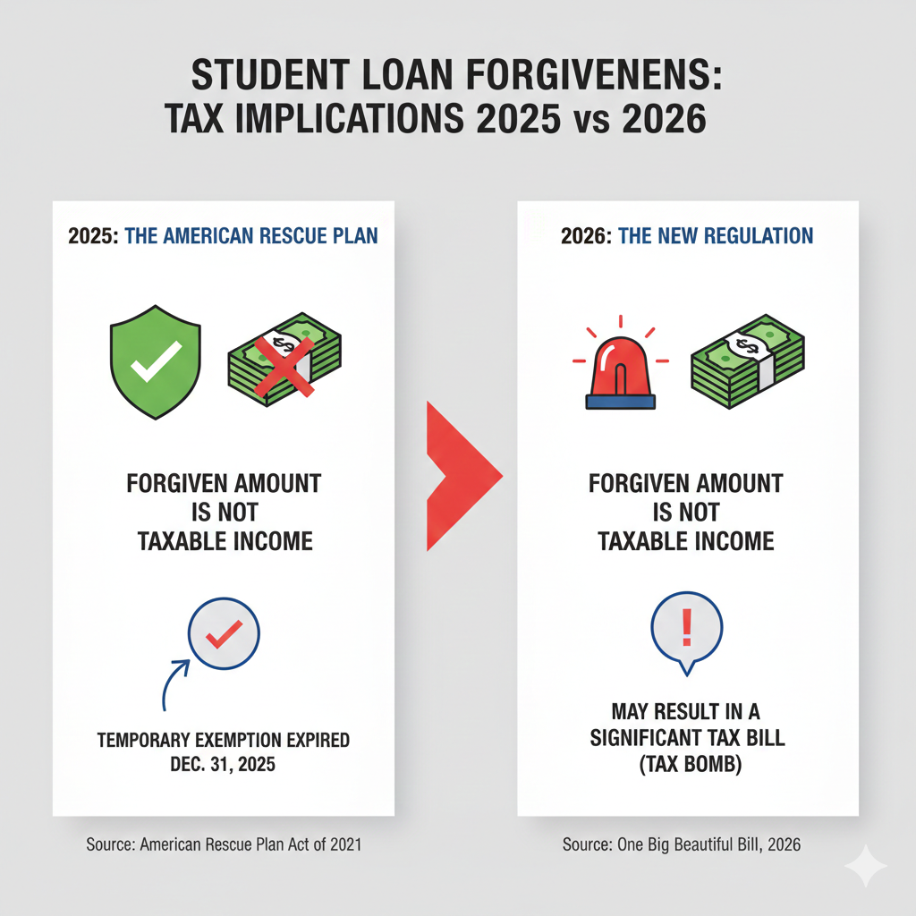 많은 대출자가 소득 기반 상환(IDR) 플랜을 통해 20~25년 후 남은 잔액을 탕감받길 기대합니다. 하지만 2026년부터는 '세금 면제 혜택'이 종료되었습니다.
