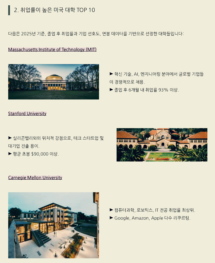2025년 취업이 가장 잘 되는 미국 대학교 TOP 10 을 알아보세요.